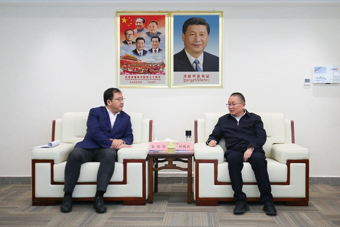 祁騰武對張旭陽一行來訪表示歡迎,并介紹了西藏開投集團概況、生產(chǎn)經(jīng)營和投資建設情況。他表示,光大銀行作為國內領先的綜合性金融機構,在綠色金融、創(chuàng)新金融服務方面具有顯著優(yōu)勢。西藏開投集團與光大銀行已有良好的合作關系,期待與光大銀行在多層次、多領域開展更加深入務實合作,歡迎光大銀行參與西藏開投清潔能源開發(fā)建設,共同探索“科技賦能產(chǎn)業(yè)、金融助力發(fā)展”新路徑,助力地區(qū)經(jīng)濟社會發(fā)展和國家“雙碳”戰(zhàn)略目標實現(xiàn)。